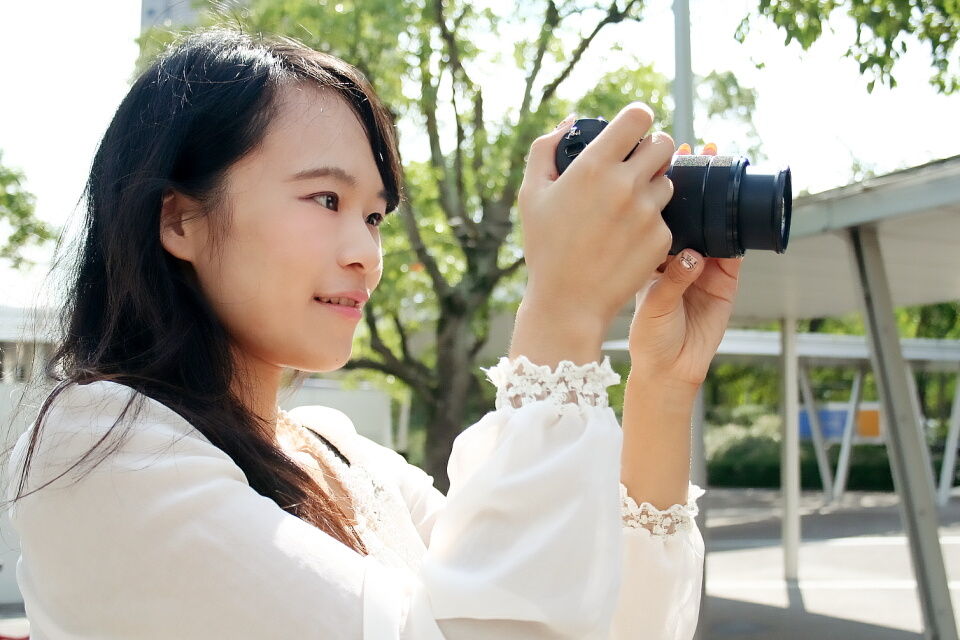 女の子の手には少し重量を感じてしまいました。カバンに簡単に入れておくというよりも「旅行に行くからしっかり写真を撮ろう!」といった写真を撮る理由がはっきりあるときに頼りになるカメラですね。