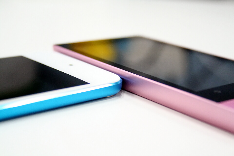 前回は開封レポをお届けしましたが、今回は、実質の対抗商品となるアップル製の「iPod touch」と外観を中心に比較してみました!