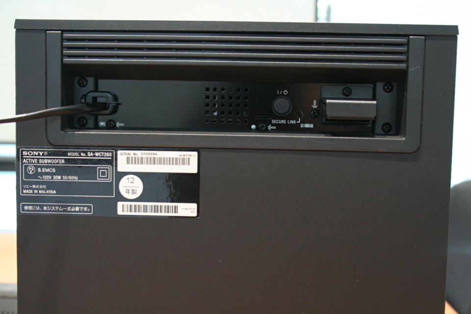 消費電力(待機時)本体:アンプ(スピーカーに内蔵) 約32W(0.3W以下)、サブウーファー 約30W(0.3W以下)