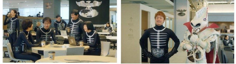地獄の軍団 ショッカーのオフィスで、組織の雰囲気が変わったことに気づく、幹部のイカデビル。香取さんに理由を聞くと、「カオナビ」を導入したことが分かります。覆面を外した顔とそれぞれの才能についての情報が共有されたことで、人材の最適配置が進み、組織全体のモチベーションが上がったのです。暗く抑圧的だったオフィスは、明るくオープンな雰囲気に。個性を活かした職務を担当するようになったショッカー戦闘員たちから、新しい目標やアイデアが生まれてきます。戦闘員たちと語らうイカデビルも、組織力の向上を実感しているようです。
