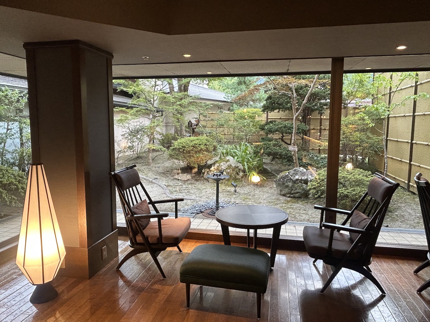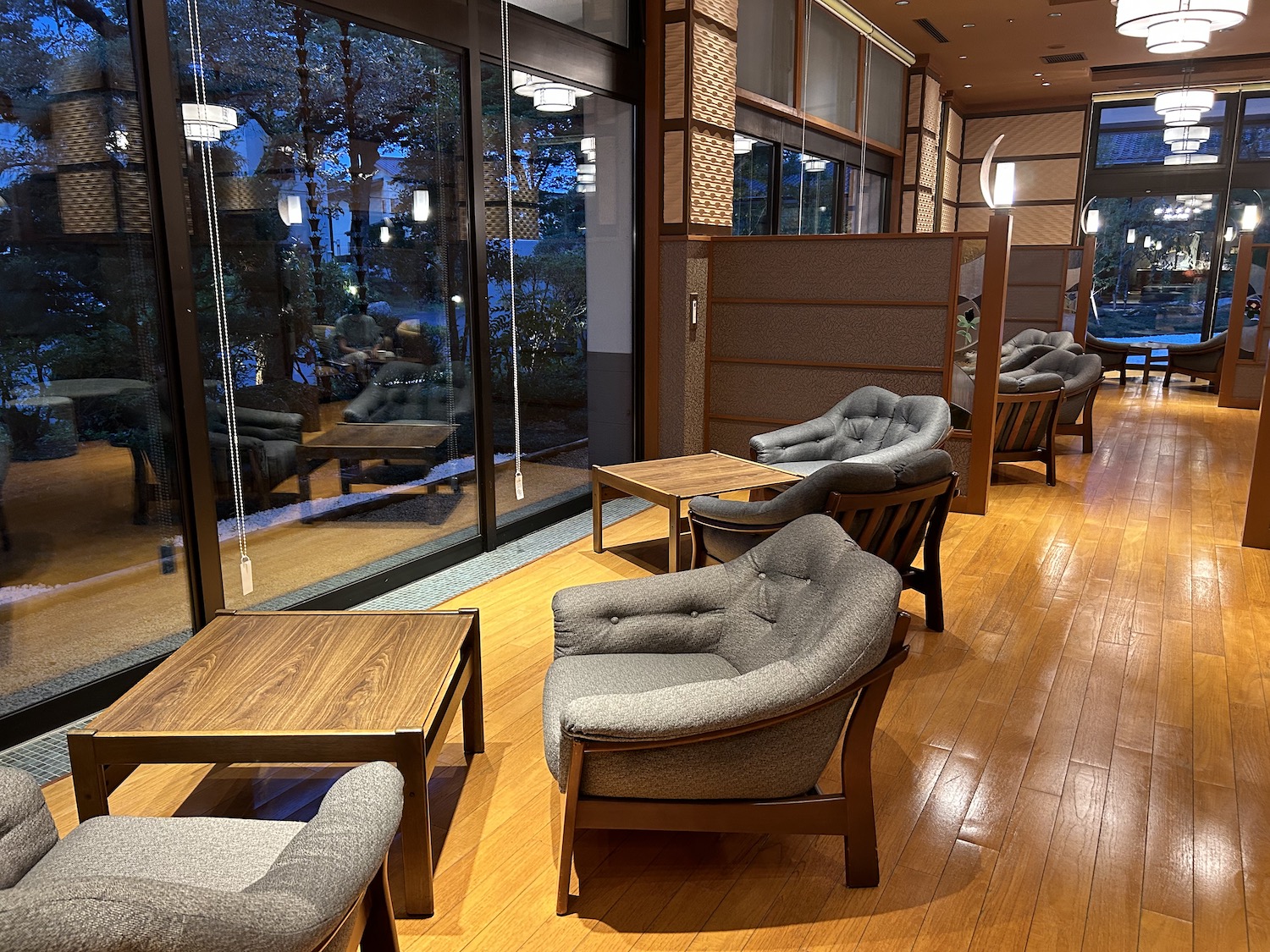 飲み物とおつまみを手に湯上がりの時間を楽しみます。落ち着いたラウンジで温泉の後の生ビールはとにかく至福! 非日常の贅沢な時間です。