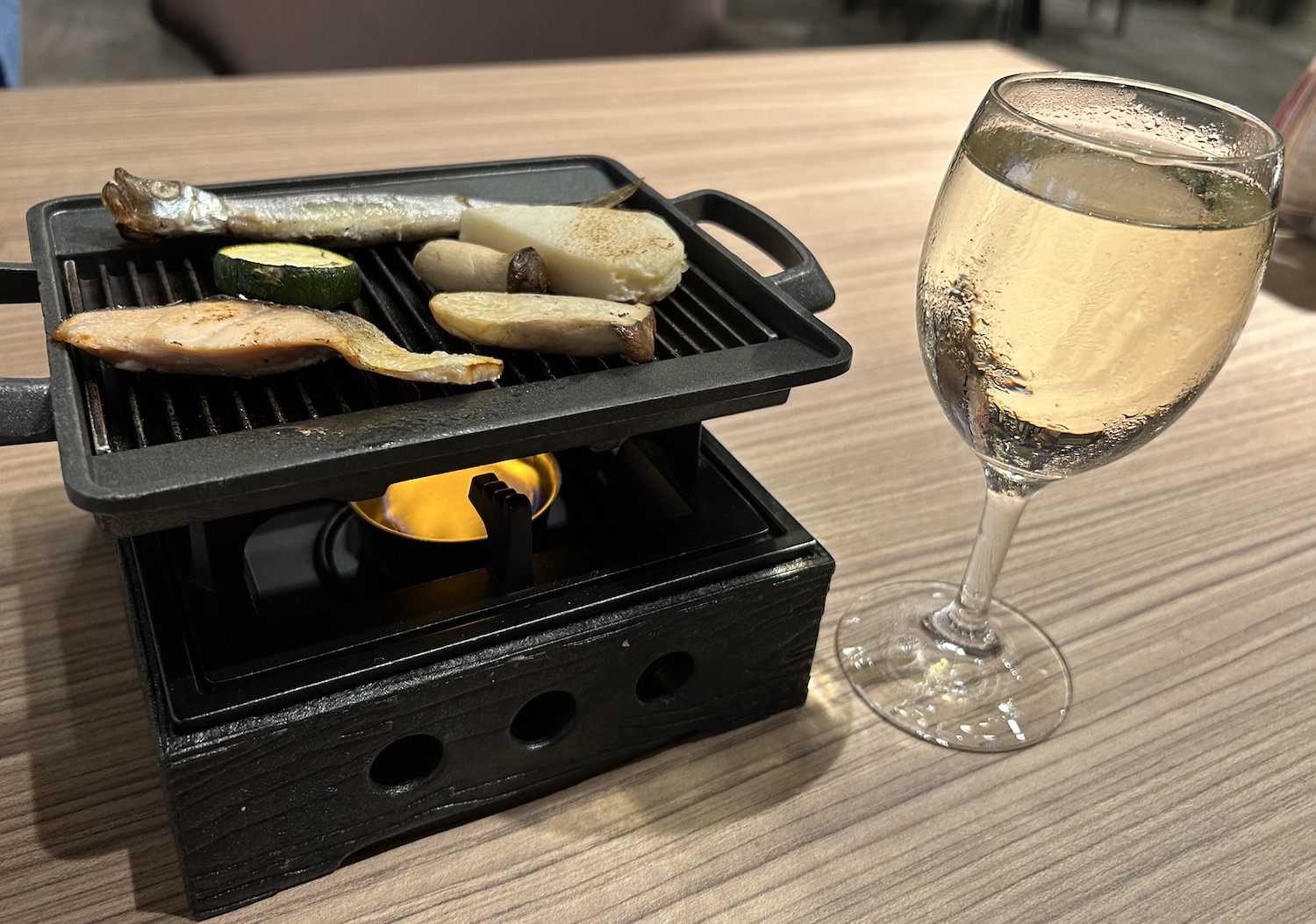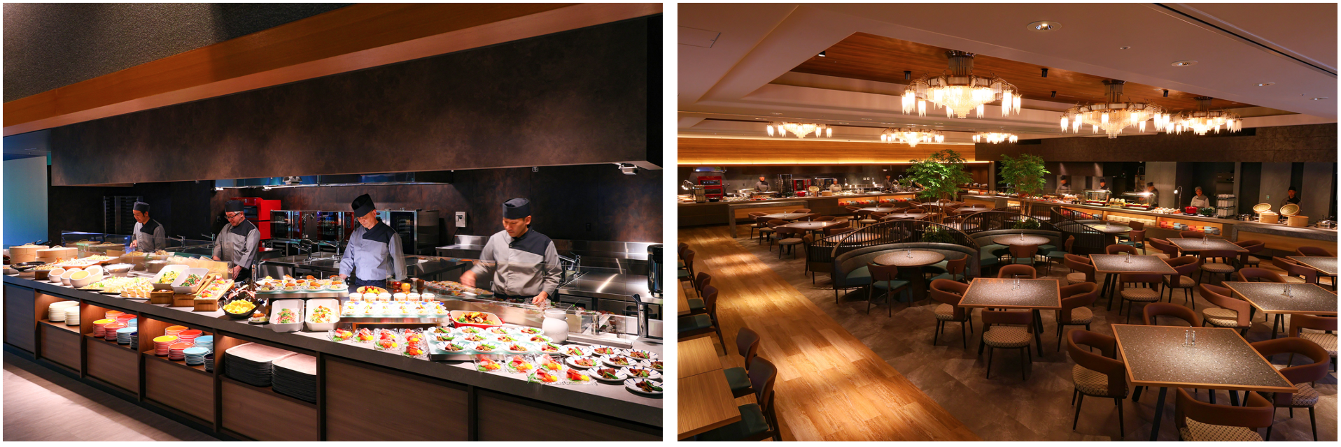 客席を囲むように設置されたライブキッチンを見ながら好きな物を選んでいきます。季節によってメニューは変化しますが、私が訪れた時は「三陸産牡蠣フライ」や「仙台名物・牛タン」、「蔵王クリームチーズを使ったアミューズ」なども夕食時に用意されていました。
