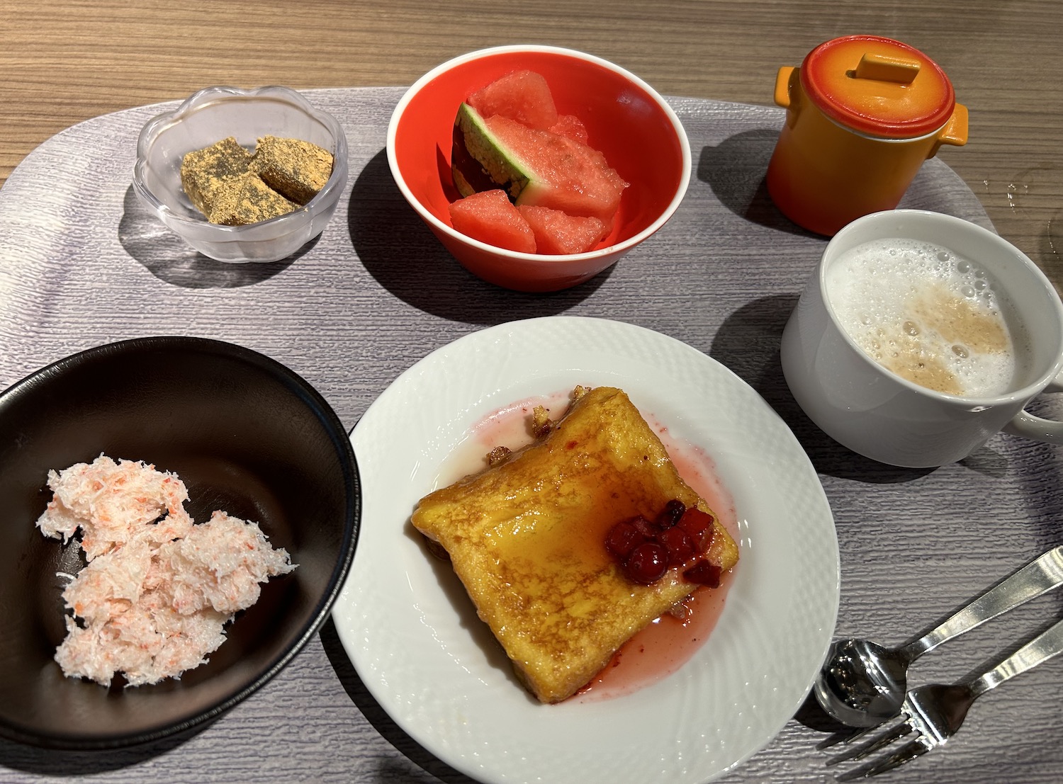 好きなものを好きなだけ食べられるので、大好きな海鮮とフレンチトーストという不思議なメニューもありなんです。