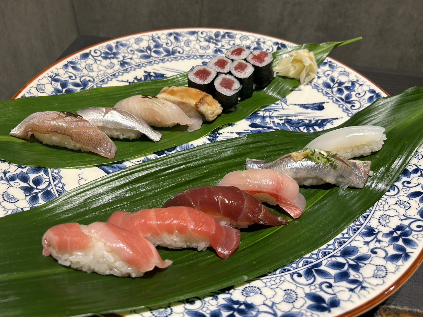 コースは、5,500円、8,250円、11,000円(税込)の3種類で、料理人がその日に最も良いと判断した旬の食材が使用されています。日本の四季を感じられる逸品の数々をお任せでいただけるというもの。東京湾でとれる穴子や小肌、金目鯛、太刀魚など江戸前ブランドを代表する鮮魚に加え、豊洲仲卸「石司」から仕入れる国産天然本まぐろを使用した「本格江戸前にぎり鮨」は、ひと手間もふた手間もかけて仕立てた握りが絶品です。