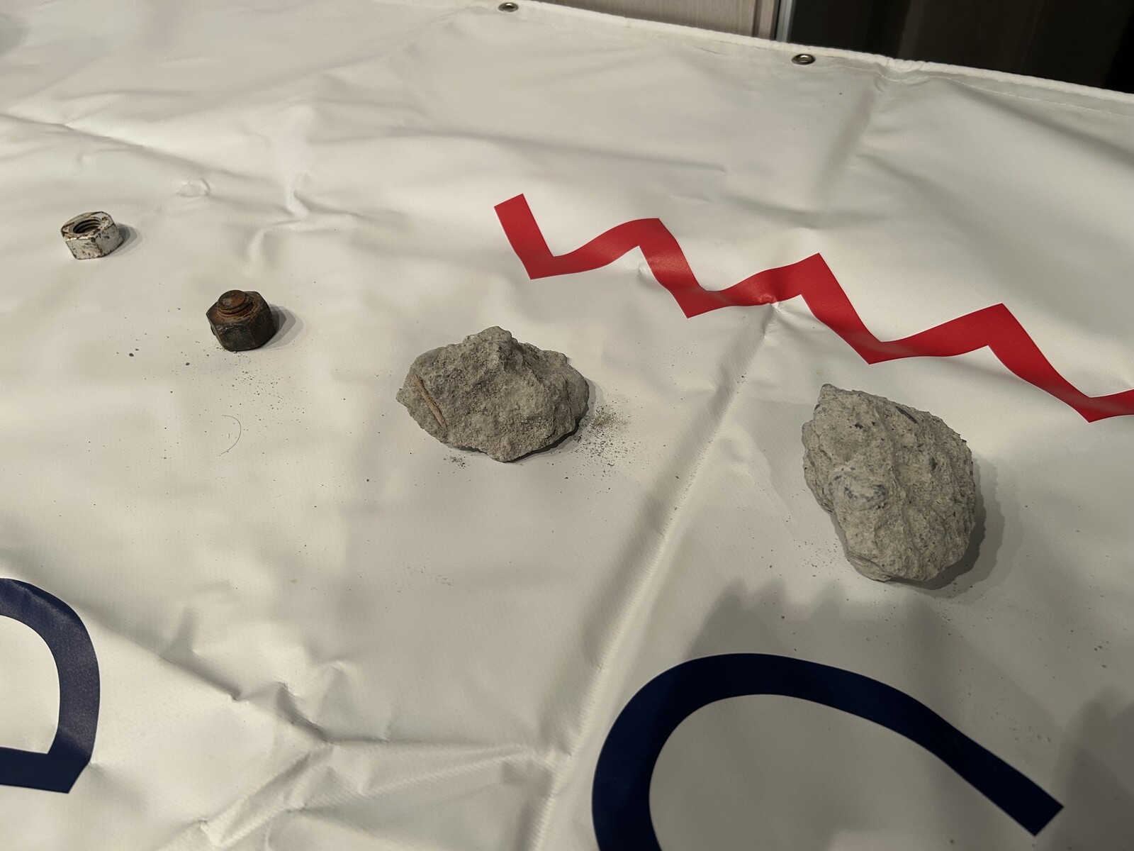 解体現場での飛散事故の危険性を可視化するため、なかやまきんに君さんの目の前で、ビルの10階から時速100kmでボルトが落ちる事故現場を再現したデモンストレーションを実施。その勢いを体感したなかやまきんに君さんは「想像をはるかに超えるスピードと衝撃。ヘルメットもCage Systemのありがたさを痛感しますね」と話していました。
