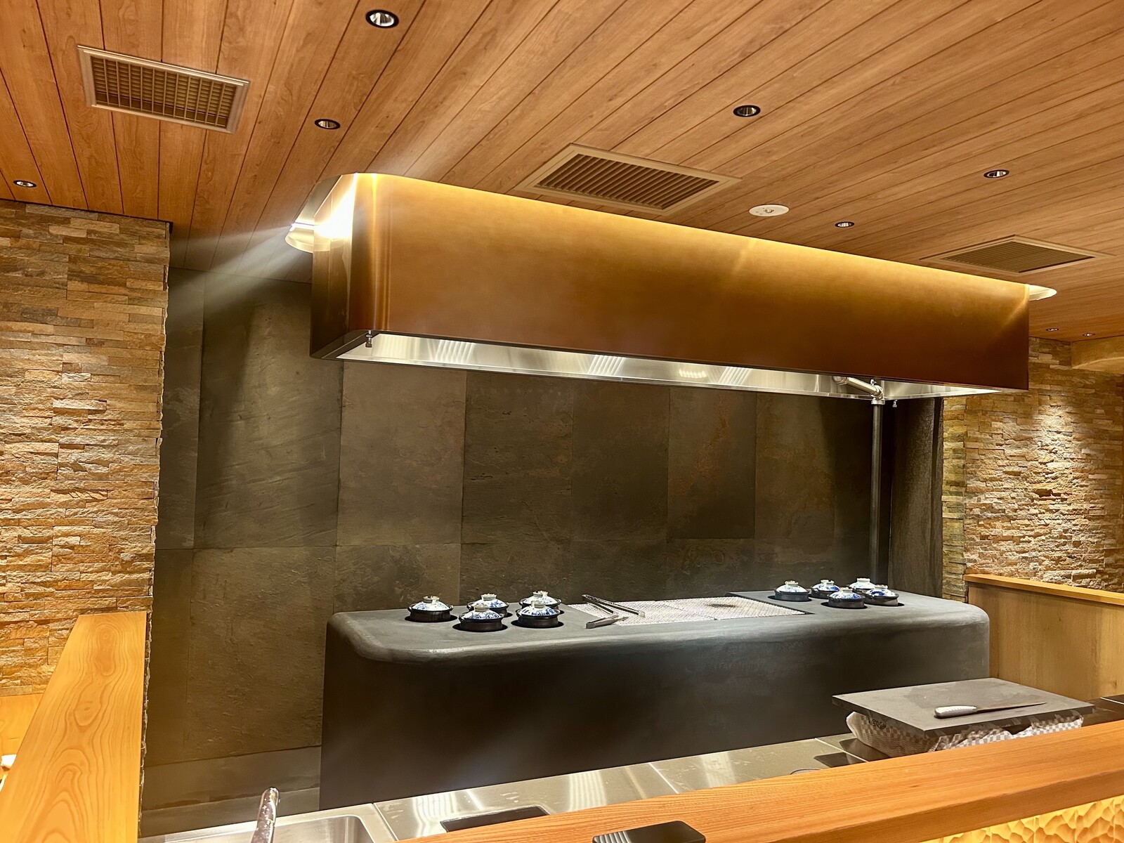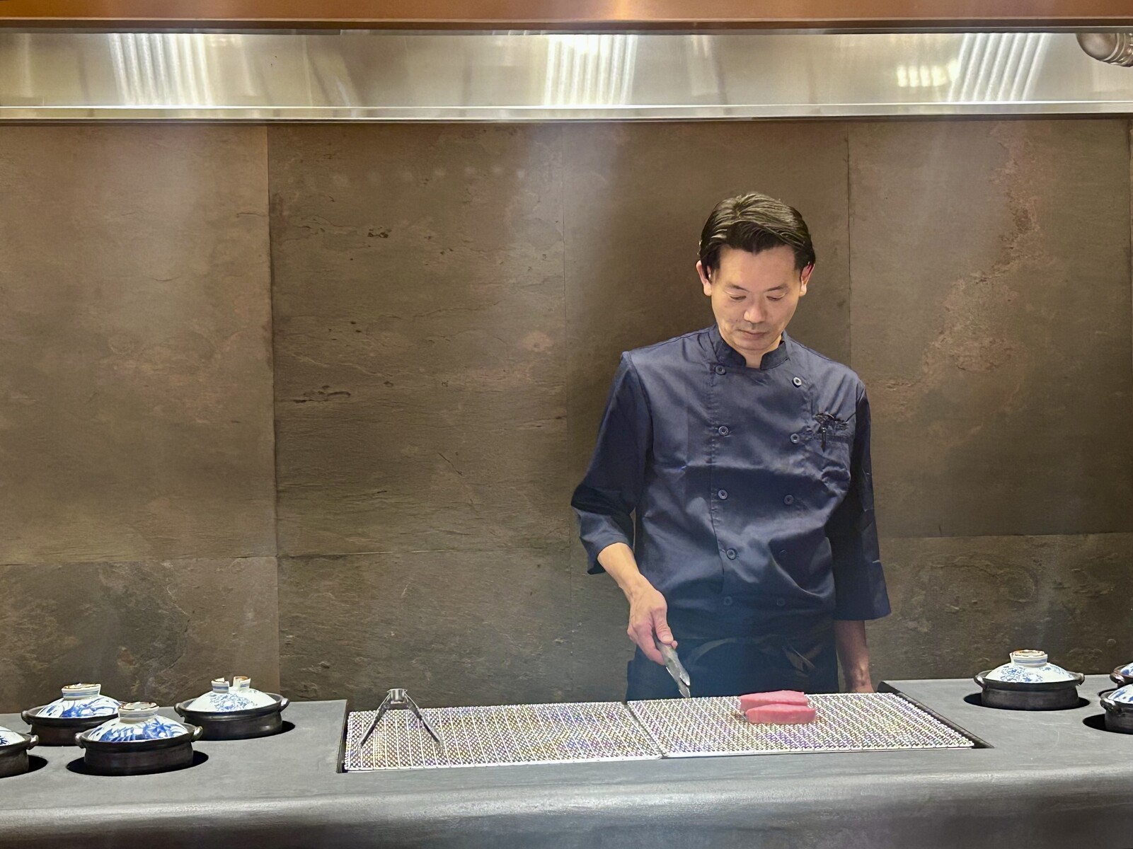 焼肉は料理人が目の前で焼き上げるスタイル。