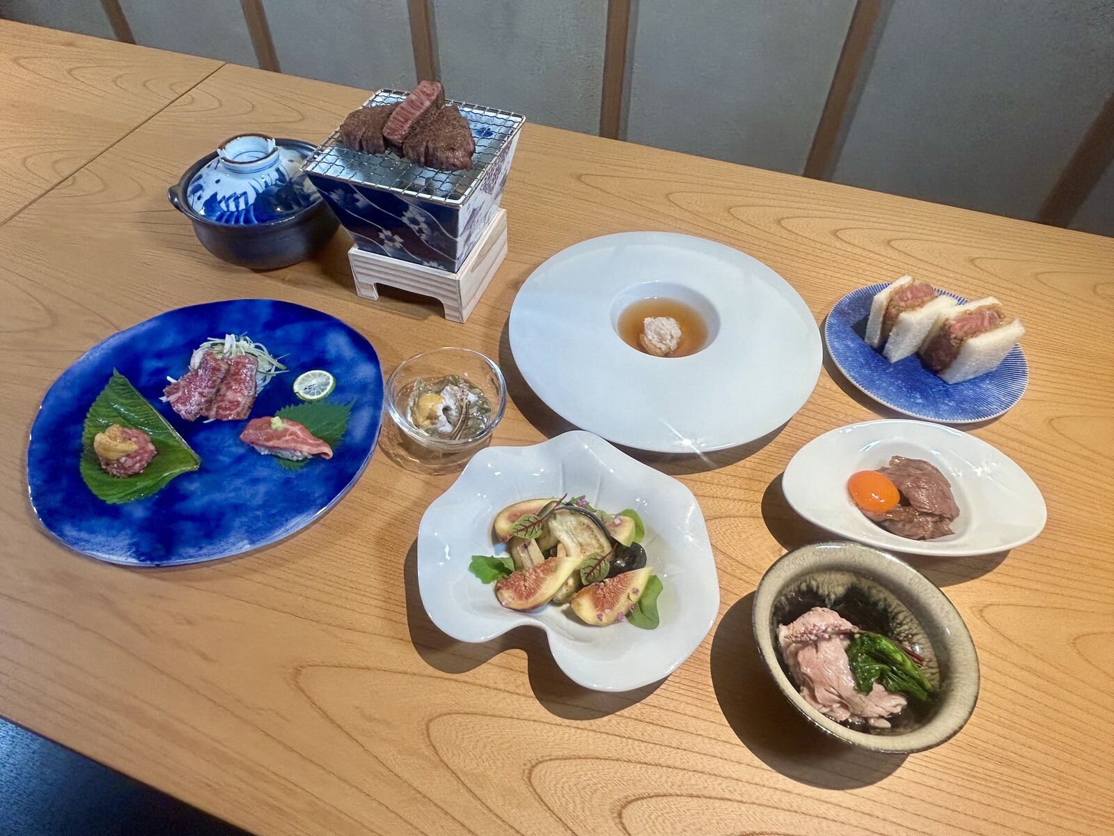 またディナー帯はコース料理を提供し、アトム株式会社が一頭買いで仕入れた宮崎牛の希少部位やシャトーブリアンを贅沢に使用した料理が楽しめます。
