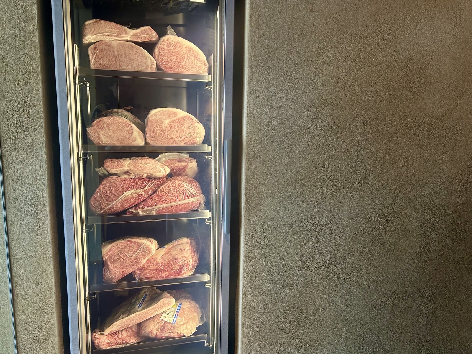 店内に入ってすぐのショーケースには高級和牛が並んでいて、期待が高まります。
